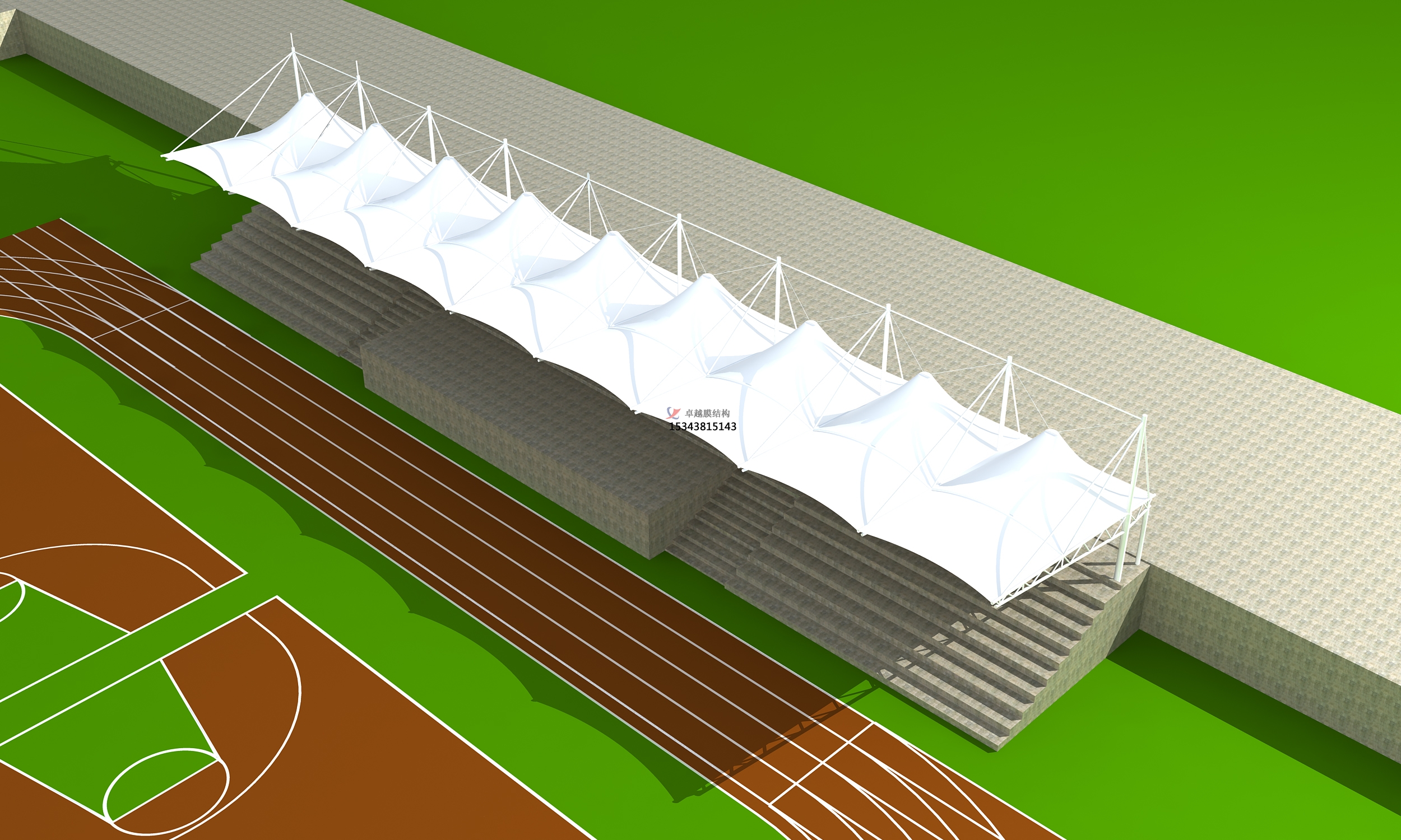《膜結(jié)構(gòu)看臺(tái)效果圖》 《膜結(jié)構(gòu)看臺(tái)工程案例》 《膜結(jié)構(gòu)看臺(tái)正在施工項(xiàng)目》