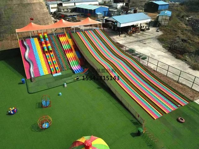 滑梯:滑梯的彩色膜結(jié)構(gòu)可以提供遮陽(yáng)和避雨的功能,同時(shí)也可以增加視覺(jué)效果,讓滑梯更加吸引人。
