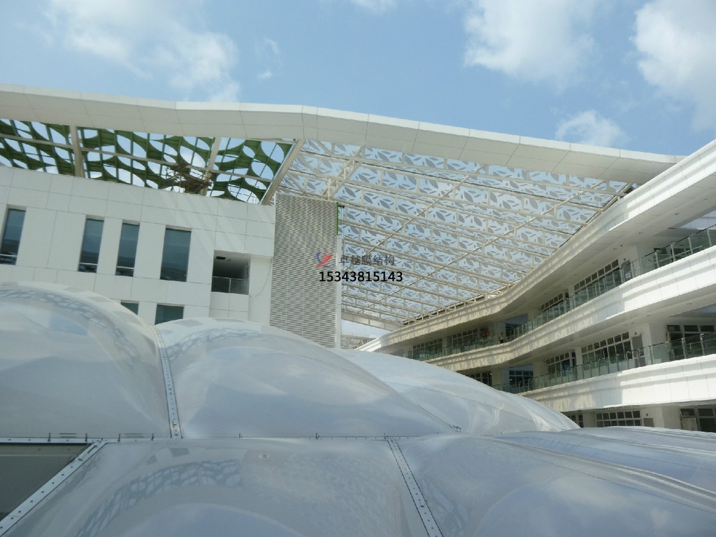 也不是所有的建筑都需要透明,或許只需要采光好半透明這種材料就可以滿足了,ETFE膜材就根據(jù)不同的建筑需求可以定制不同透光率的ETFE膜材料。無論你的設(shè)計(jì)需求是什么,我們黑龍江ETFE膜結(jié)構(gòu)建筑的透光性可以滿足您對采光這方面的需求。