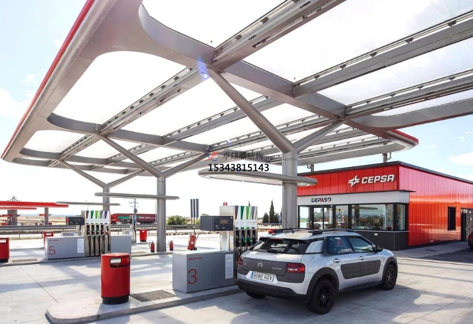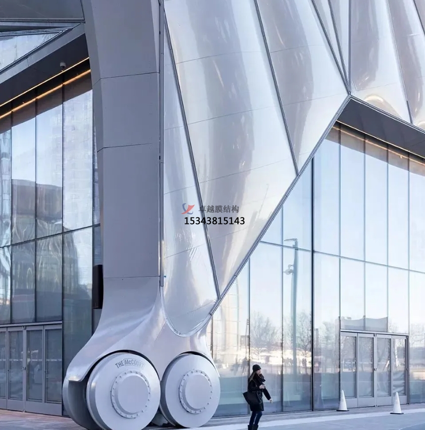 張拉式索膜結(jié)構(gòu)可以根據(jù)需要制成任意復(fù)雜曲面形狀,體現(xiàn)自然流暢之美;并有多種顏色的膜材可選,以適應(yīng)周邊的環(huán)境、滿足建筑效果要求;而且膜結(jié)構(gòu)質(zhì)量輕,一般不需要太龐大的支撐結(jié)構(gòu),這是其他建筑材料無法比擬的優(yōu)勢所在。