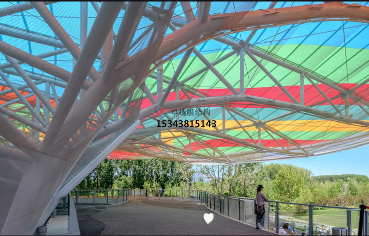 同時(shí),ETFE膜結(jié)構(gòu)的延展性大于400%,確保膜結(jié)構(gòu)可以經(jīng)過張拉力形成各種三維空間曲面造型。