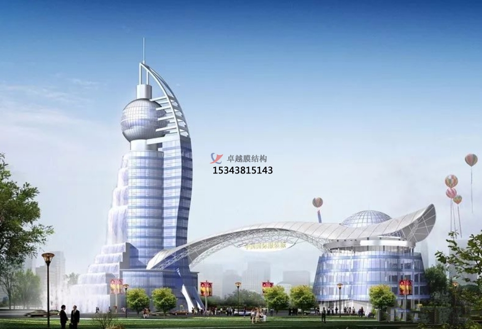 膜結(jié)構(gòu)大門作為建筑或景區(qū)入口,用來(lái)遮風(fēng)擋雨,也是景區(qū)的臉面,是景區(qū)神韻的表達(dá),不僅要求其造型新穎,有創(chuàng)意,而且還要考慮建造材質(zhì)。
