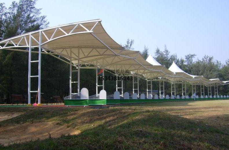 高爾夫球場(chǎng)綠草如茵青山環(huán)繞的整體環(huán)境,時(shí)尚又環(huán)保的配套設(shè)施才能更加提升其高貴品質(zhì)。膜結(jié)構(gòu)因適用廣,技術(shù)性及藝術(shù)性兼?zhèn)?,用?lái)建設(shè)高爾夫球場(chǎng)發(fā)球臺(tái)再合適不過(guò),潔白的膜材及獨(dú)特的造型搭配,此外,因張拉膜具有自重輕的特性,使其外表看起來(lái)輕盈簡(jiǎn)約,讓前來(lái)運(yùn)動(dòng)的人們耳目一新,卸下平日工作壓力帶來(lái)的那份沉重,盡情享受身體與心靈的放松,何樂(lè)而不為呢?