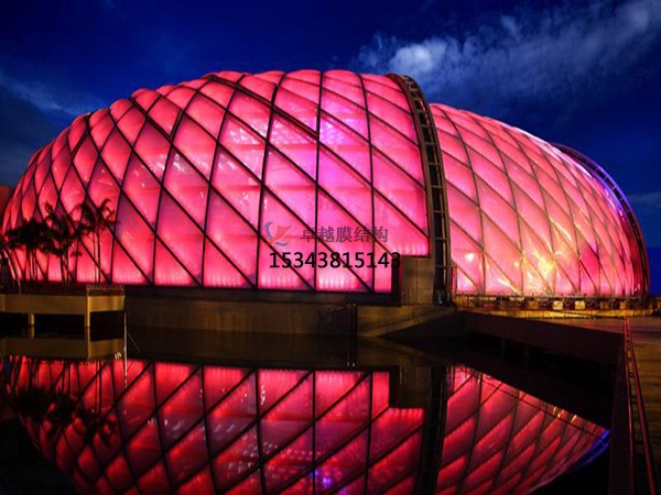 不僅如此,這種膜還具有自清潔功能,使灰塵不易附在其表面,清潔周期大約為5年。這種材料另一大優(yōu)點就是可在現(xiàn)場預(yù)制成薄膜氣泡,方便施工和維修。另外成本合理也是其極具競爭力的另一優(yōu)勢,覆蓋層加上結(jié)構(gòu)的費用只有玻璃的一半,而使用壽命卻長達25年。