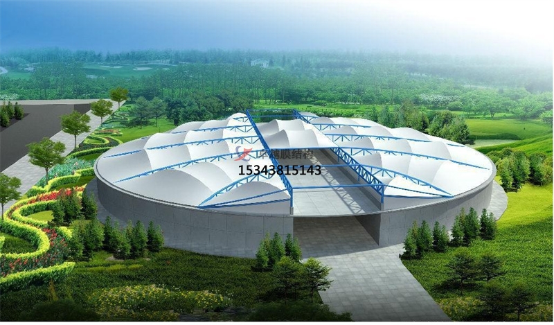 3、跨度大:由于膜材自重輕,而抗拉強度很大,膜結(jié)構(gòu)可以從根本上克服傳統(tǒng)結(jié)構(gòu)在大跨度(中間無支撐)建筑上實現(xiàn)所遇到的困難,適于大跨度的池體;