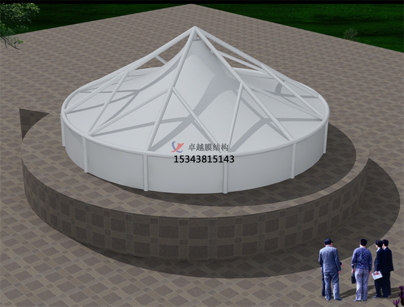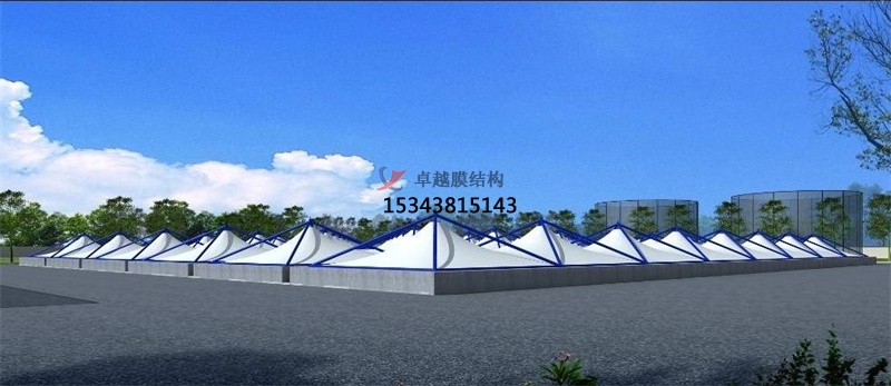 8、造型美觀:極具現(xiàn)代建筑感,造型飄逸美觀;自潔性能好,由于膜材表面具有PVDF自潔涂層,能有效減少膜材表面的積灰的附著力,通過自然雨水即可以得到有效清洗,其抗污能力遠(yuǎn)遠(yuǎn)大于其他傳統(tǒng)覆蓋材料,能使其長久保持亮麗的觀感;良好的光學(xué)性能。