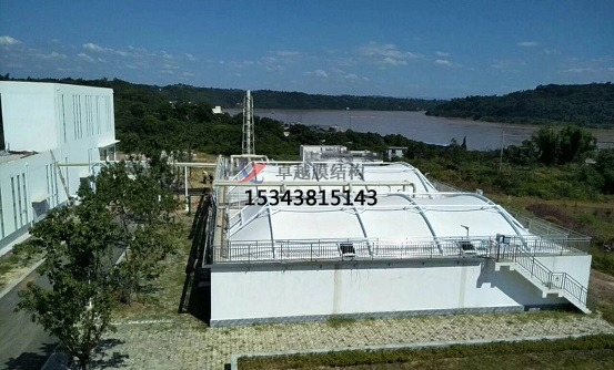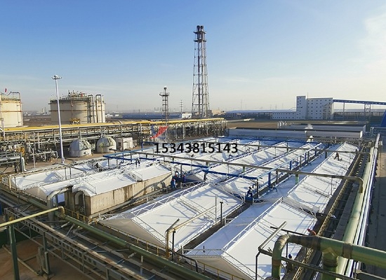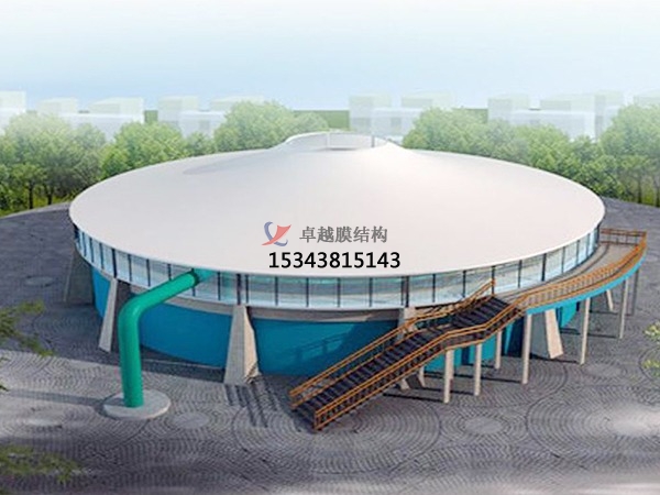 污水池加蓋的原理:密封收集,膜材完全覆蓋污水池,四周與池壁密封,防止廢氣外溢。廢氣輸送,罩體表面設(shè)出氣口,通過管道將廢氣輸送至凈化設(shè)備(如噴淋塔)。凈化處理,酸性廢氣采用堿液噴淋吸收,堿性廢氣采用酸液噴淋。處理效率可達(dá)90%以上,確保達(dá)標(biāo)排放。防腐設(shè)計(jì),鋼構(gòu)不與池內(nèi)氣體接觸,膜材采用耐腐蝕的氟碳纖維材質(zhì),雙重防護(hù)提升耐久性。