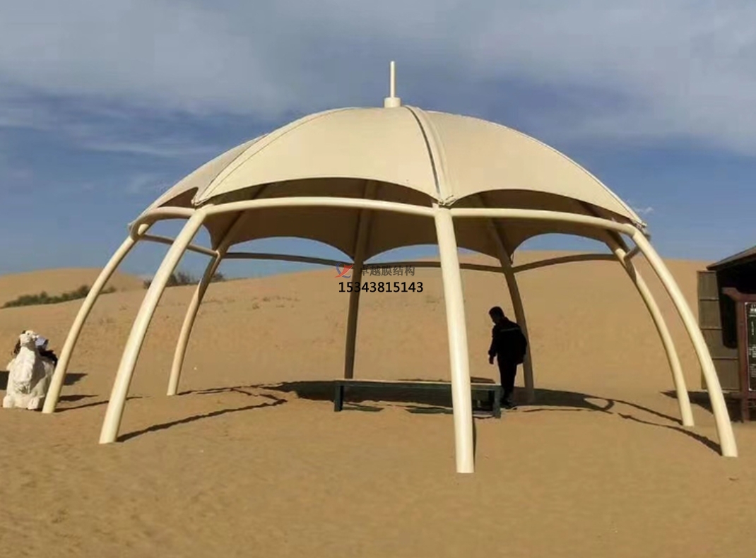 膜結(jié)構(gòu)遮陽(yáng)棚主要由高強(qiáng)度薄膜材料和加強(qiáng)構(gòu)件(如鋼架、鋼柱或鋼索)組成。這種結(jié)構(gòu)不僅輕盈美觀,而且具有很高的強(qiáng)度和耐久性。膜材料具有良好的自潔性和防火阻燃性能,能夠抵御紫外線的照射,使用壽命長(zhǎng)達(dá)20年以上。其多樣化的造型設(shè)計(jì),無(wú)論是輕盈如飛燕的點(diǎn)綴景觀,還是氣勢(shì)磅礴的雕塑建筑,都能與周?chē)h(huán)境相得益彰,展現(xiàn)出獨(dú)特的藝術(shù)裝飾效果。