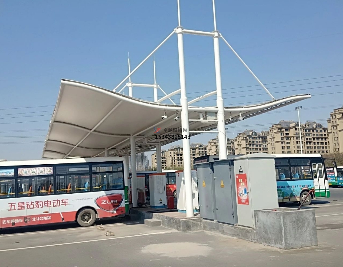 膜結(jié)構(gòu)車棚在此發(fā)揮了重要作用。一般采用骨架式,先用鋼材制成骨架,然后安裝膜材,通過加強構(gòu)建(鋼索、鋼柱)使其內(nèi)部產(chǎn)生一定的張力行程車棚形狀,能夠承受一定的風載荷跟雪載荷。使用張拉式的也比較多。也有使用充氣式的,這種比較高端維護成本比較高使用比較少。