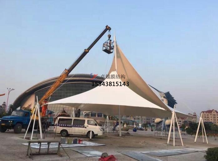 透光性是現(xiàn)代商業(yè)廣場雨棚搭建更被廣泛認可的特性之一。膜材的透光性可以為建筑提供所需的照度,這對于建筑節(jié)能十分重要。對于一些要求光照多且亮度高的商業(yè)建筑等尤為重要。通過自然采光與人工采光的綜合利用,膜材透光性可為建筑設(shè)計提供更大的美學(xué)創(chuàng)作空間。夜晚,商業(yè)廣場雨棚搭建變成了光的雕塑。