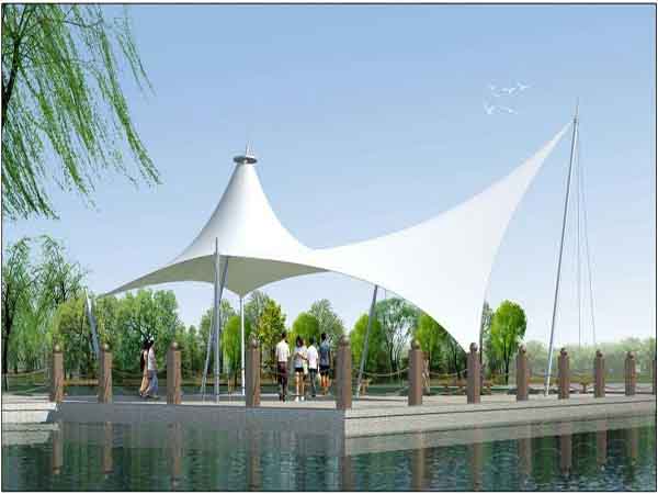 景觀膜結(jié)構(gòu)不僅能夠根據(jù)園林景觀的實(shí)際情況設(shè)計(jì)出能夠跟自然景觀和諧一體的造型,重要的是還能提供豐富多彩的用途,讓人賞心悅目,景觀膜結(jié)構(gòu)充分展示了結(jié)構(gòu)構(gòu)件清晰受力的藝術(shù)之美,配合周圍景色創(chuàng)造出一種現(xiàn)代與自然結(jié)合的感覺(jué);