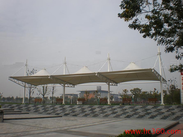 景觀膜結(jié)構(gòu)可以從根本上克服傳統(tǒng)建筑在大跨度建筑上的技術(shù)困難創(chuàng)造出開敞無遮擋的空間,提供了良好的空間尺度和視線條件。尤其適合在室外應(yīng)用于尺度較大的景觀設(shè)計(jì),例如大型城市廣場(chǎng)、大規(guī)模的體育場(chǎng)等,跨度大且造型新穎。