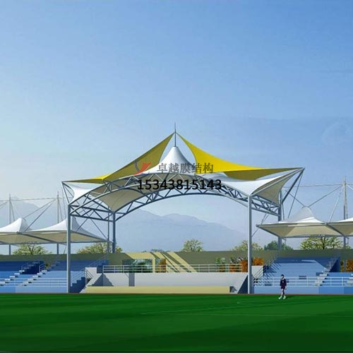 設(shè)計(jì)方面,該看臺(tái)采用了膜結(jié)構(gòu)技術(shù)。膜結(jié)構(gòu)是一種輕質(zhì)、高強(qiáng)的材料,具有優(yōu)異的彈性和柔韌性,同時(shí)具有良好的抗風(fēng)、抗震性能。通過(guò)使用膜結(jié)構(gòu),可以將看臺(tái)的重量減輕,從而減少了結(jié)構(gòu)的造價(jià)。