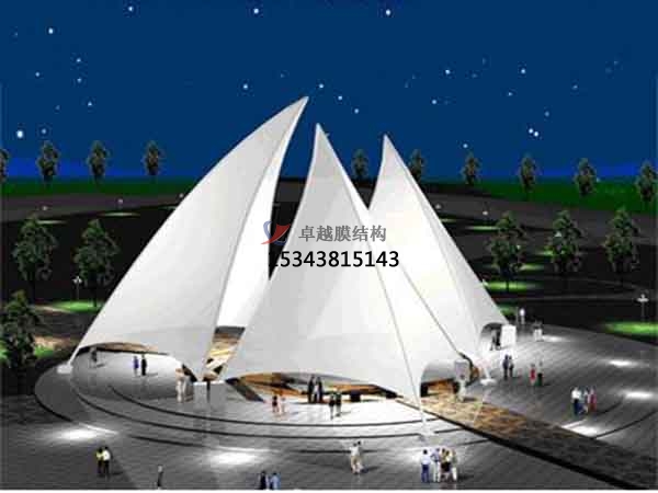 景觀膜結(jié)構(gòu)的獨(dú)特曲面外形使其具有強(qiáng)烈的雕塑感。膜面通過張力達(dá)到自平衡。負(fù)高斯膜面高低起伏具有的平衡感使體型較大的結(jié)構(gòu)看上去像擺脫了重力的束縛般輕盈地 雕塑般的質(zhì)感令人激動(dòng),更好的膜結(jié)構(gòu)設(shè)計(jì)是結(jié)構(gòu)與外形的有機(jī)融合,使其顯得了類拔萃,同時(shí)與自然環(huán)境、歷史及現(xiàn)代的城市景觀有機(jī)結(jié)合。輕型結(jié)構(gòu)可以看成是大型的雕塑作品,可為其周邊空間增添活力,成為周圍環(huán)境的補(bǔ)充和焦點(diǎn)。利用膜材的透光性和反射性,經(jīng)過設(shè)計(jì)的人工燈光也可使膜結(jié)構(gòu)成為光的雕塑。