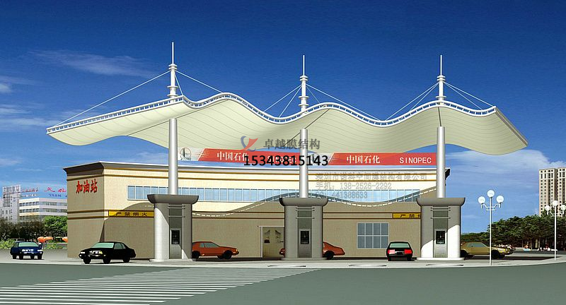 加油站罩棚是加油站的重要組成部分,設(shè)計(jì)加油站罩棚不僅僅要具有牢固、省電、防水等功能,還要美觀大方呢。膜結(jié)構(gòu)輕巧、別致的造型在停車(chē)場(chǎng)及候車(chē)廳的建設(shè)中擔(dān)當(dāng)了重要角色,除了滿足防風(fēng)雨、防日曬等基本功能外,并有較好的標(biāo)識(shí)招攬效果,展現(xiàn)了人們個(gè)性化的一面。