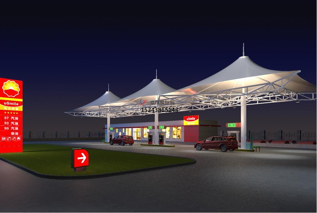 項目結(jié)構(gòu)形式:骨架式膜結(jié)構(gòu)加油站