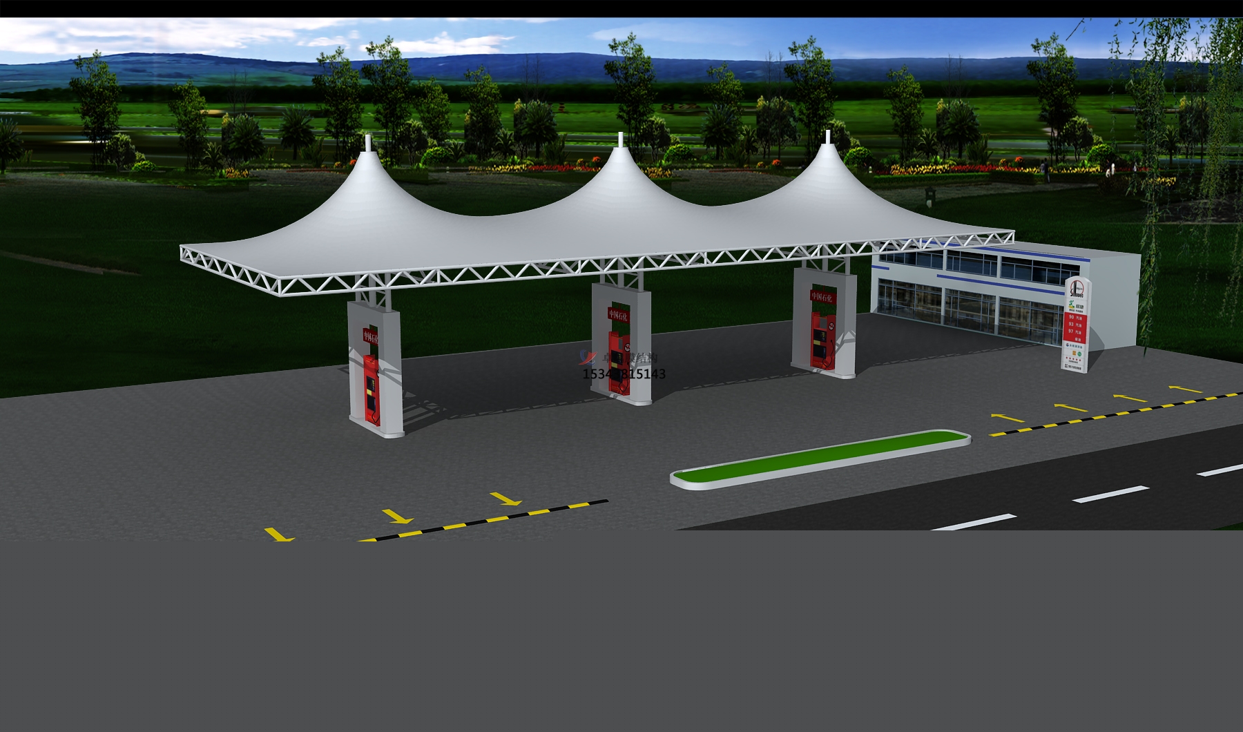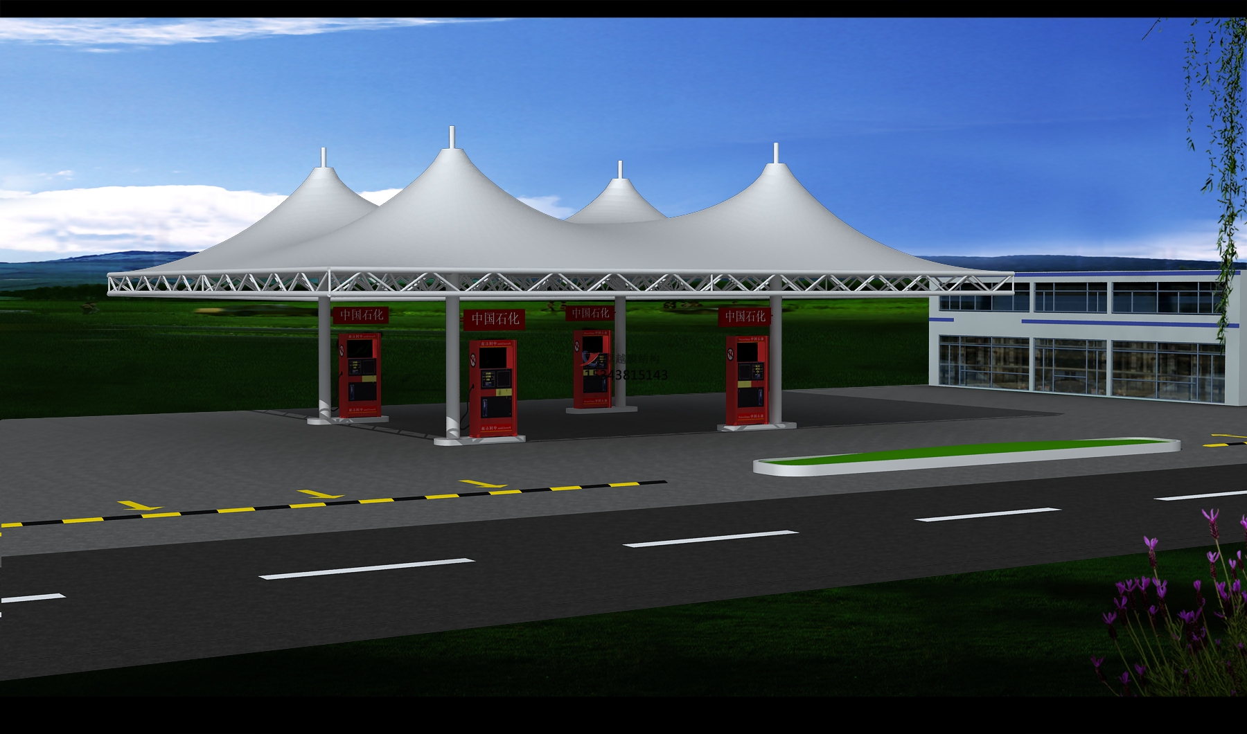 項(xiàng)目概況:中國(guó)石油化工集團(tuán)有限公司(以下簡(jiǎn)稱公司)的前身是成立于1983年7月的中國(guó)石油化工總公司。1998年7月,按照黨中央關(guān)于實(shí)施石油石化行業(yè)戰(zhàn)略性重組的部署,在原中國(guó)石油化工總公司基礎(chǔ)上重組成立中國(guó)石油化工集團(tuán)公司,2018年8月,經(jīng)公司制改制為中國(guó)石油化工集團(tuán)有限公 該站領(lǐng)導(dǎo)決定建設(shè)張拉膜雨棚,我們憑借豐富的經(jīng)驗(yàn)在眾多競(jìng)爭(zhēng)者中脫穎而出,更終也向該加油站交上了完美的答卷。