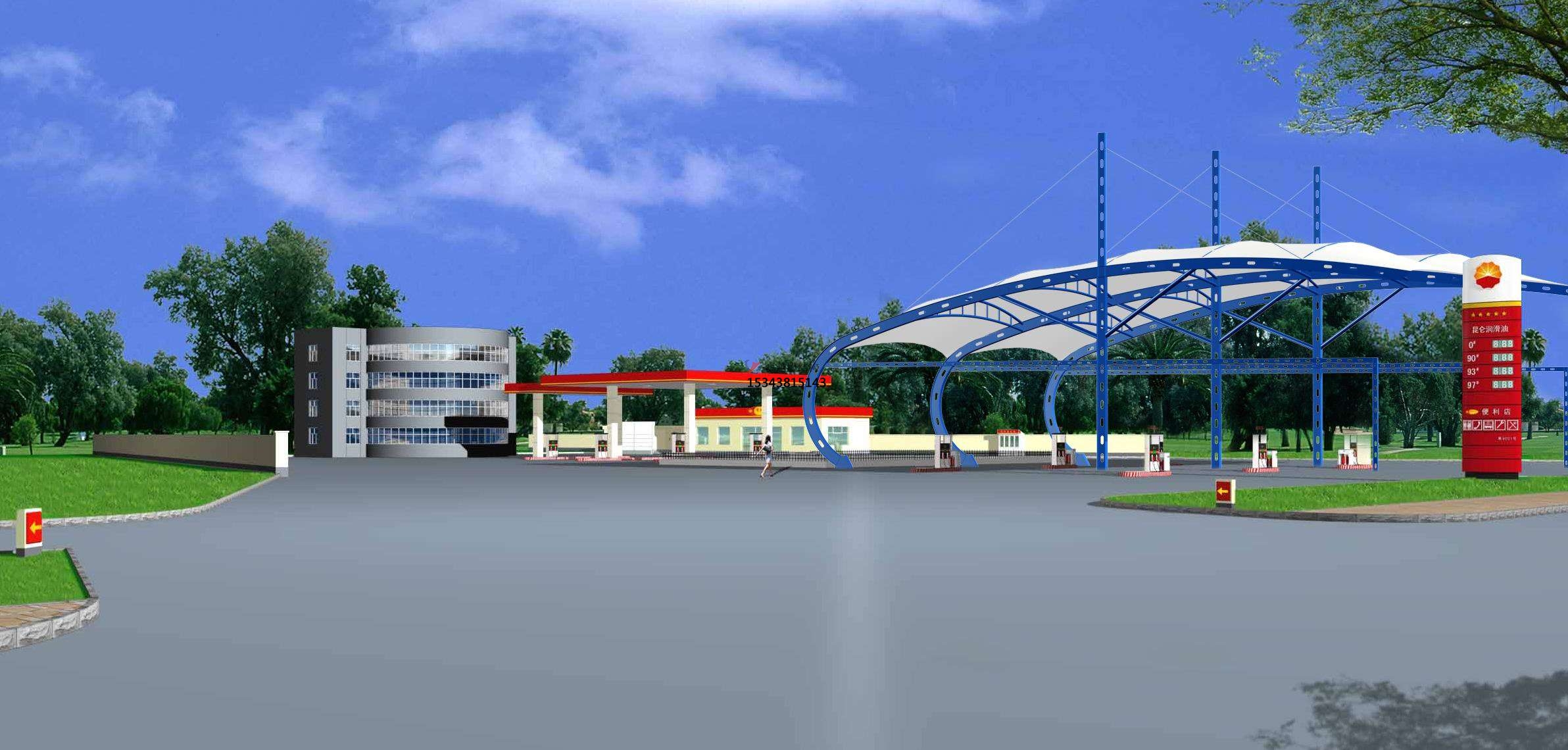 工程概況:公司主營業(yè)務(wù)范圍包括:實業(yè)投資及投資管理;石油、天然氣的勘探、開采、儲運(含管道運輸)、銷售和綜合利用;煤炭生產(chǎn)、銷售、儲存、運輸;石油煉制;我們?yōu)樵摷佑驼驹O(shè)計建造了張拉膜雨棚,進(jìn)一步提升了加油站的環(huán)境,為加油站提供了極大的便利。