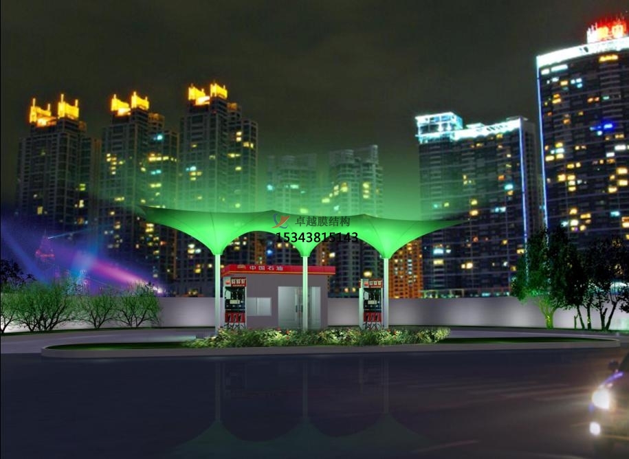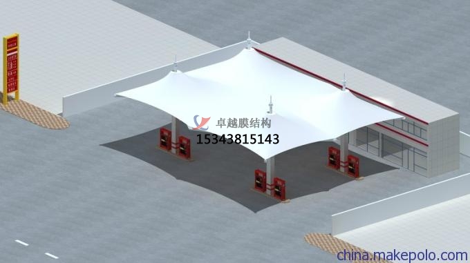 張拉膜雨棚/加氣站頂蓋主要采用鋼結(jié)構(gòu)做骨架支撐結(jié)構(gòu),高自潔建筑膜材做屋面材料防水材料,設(shè)計美觀大方,結(jié)構(gòu)安全穩(wěn)定,使用壽命可達15年到30年。廣泛應(yīng)用于各類大小加油站和加氣站。卓越張拉膜雨棚工程是較早年開展張拉膜設(shè)計施工的專業(yè)廠家,擁有各類張拉膜設(shè)計施工總承包資質(zhì),現(xiàn)在為大家介紹一下我司在陽泉周邊地區(qū)完工的一批張拉膜雨棚工程案例,我司先后在陽泉附近地區(qū)完工了陽泉服務(wù)區(qū)加油站張拉膜雨棚頂蓋、中國石油陽泉四加油站張拉膜雨棚遮陽篷、中國石化加油站(賽魚站)張拉膜雨棚罩棚等一批完工項目,給大家簡介一下:
