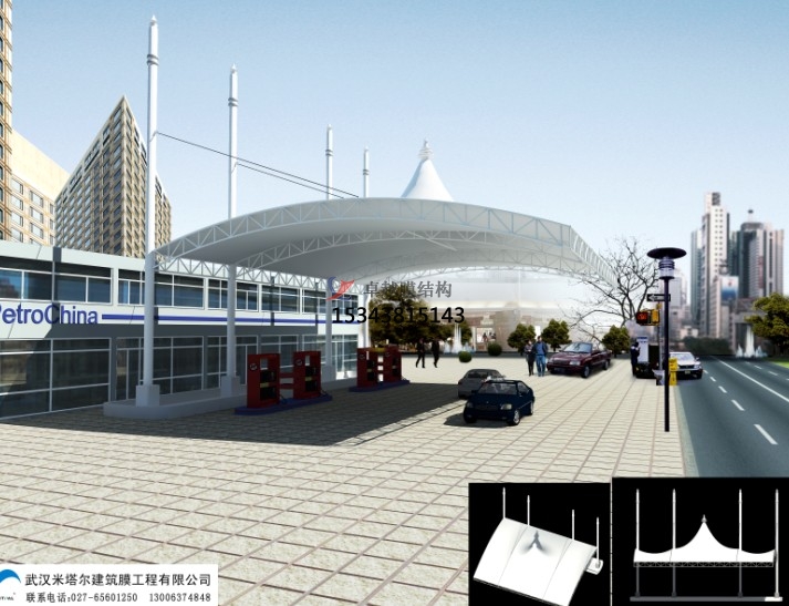工程概況:公司主營業(yè)務范圍包括:實業(yè)投資及投資管理;石油、天然氣的勘探、開采、儲運(含管道運輸)、銷售和綜合利用;煤炭生產(chǎn)、銷售、儲存、運輸;石油煉制;我們?yōu)樵摷佑驼驹O計建造了張拉膜雨棚,進一步提升了加油站的環(huán)境,為加油站提供了極大的便利。
