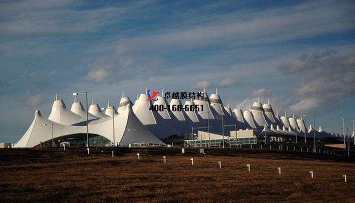 膜結(jié)構(gòu)交通設施一般采用的膜材使用壽命可以達到15-30年,而且具有強度高、阻燃性好、抗紫外線、自潔性好的特點,具有很好的透光性(透光率13%-15%,熱反射率70%-75%),整體觀感頗佳,一般可以作為永久性建筑使用。