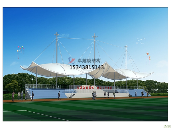 2、在高點(diǎn)部位,較少的膜面材料需要承受較大的張力,假如高點(diǎn)結(jié)構(gòu)很小的話膜材就有可能被破壞,因此需要加大支承結(jié)構(gòu)和膜面的接觸面。
