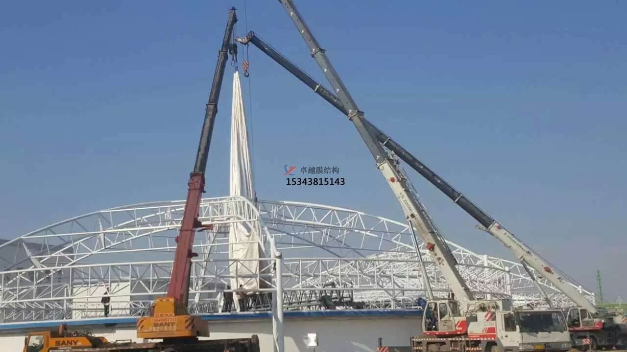 污水池加蓋安裝前,要先對工程名目相關(guān)職員進(jìn)行計劃的部署,制定出詳細(xì)的安裝施工流程.安裝前要檢驗?zāi)んw外表是否有損壞、褶皺,熱熔合縫是否有零落,螺栓、鋁合金壓條等是否有拉傷或銹蝕,索與錨具涂層是否毀壞.咱們還要根據(jù)場所的條件和施工計劃搭建膜體張開平臺,安裝平安網(wǎng),對大型的膜結(jié)構(gòu)建筑,要采集安裝時間的天氣信息情況。