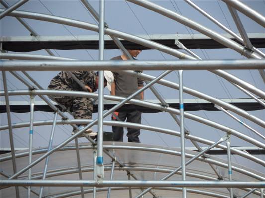 2、在膜材安裝前,對鋼結構在尺寸進行測量復核。