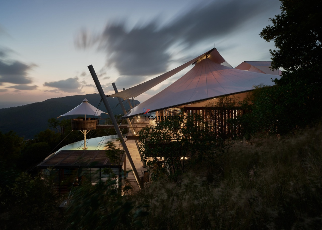 2. 張力式膜結(jié)構(gòu):僅利用簡單的支撐系統(tǒng)及膜素材自身的張力特性,構(gòu)成此類膜結(jié)構(gòu)。