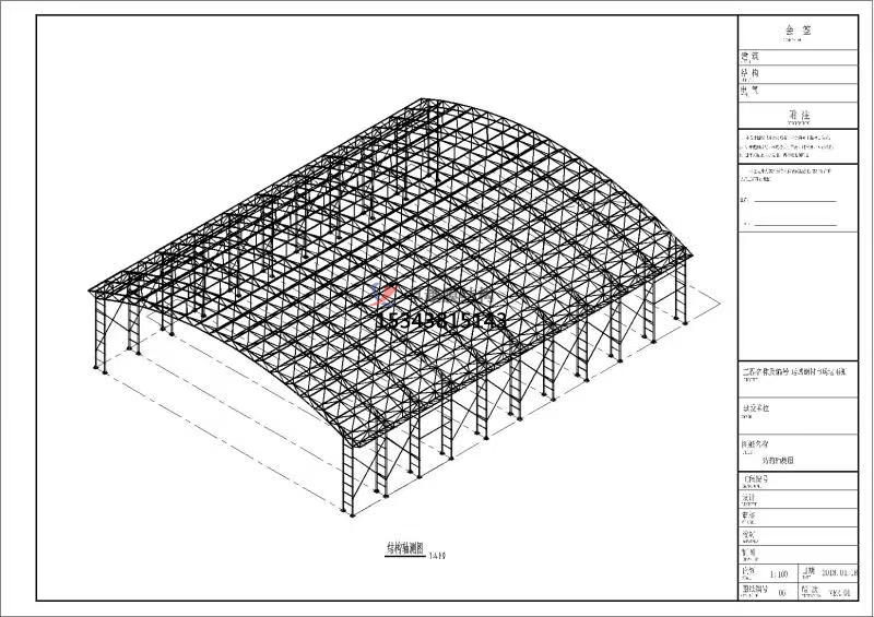 造型設(shè)計(jì)是膜結(jié)構(gòu)走廊封閉的亮點(diǎn)之一。設(shè)計(jì)圖紙通過三維模型或詳細(xì)的剖面圖、立面圖展示膜結(jié)構(gòu)的曲面形態(tài),包括膜面的起拱高度、曲率變化等。這些設(shè)計(jì)參數(shù)不僅影響建筑的外觀效果,還與結(jié)構(gòu)的力學(xué)性能密切相關(guān)。例如,適當(dāng)?shù)钠鸸案叨饶軌蛴行Х稚L(fēng)荷載,提高結(jié)構(gòu)的穩(wěn)定性。此外,設(shè)計(jì)還會(huì)考慮膜面的色彩搭配,使其與倉庫廠房整體環(huán)境相協(xié)調(diào),營造出舒適宜人的空間氛圍。