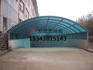 許昌車庫口膜結構案例是指位于河南省許昌市的一座車庫入口,采用了膜結構技術建造的建筑。該建筑為單層鋼結構,由兩個弧形鋼桁架和中間的膜材料組成。