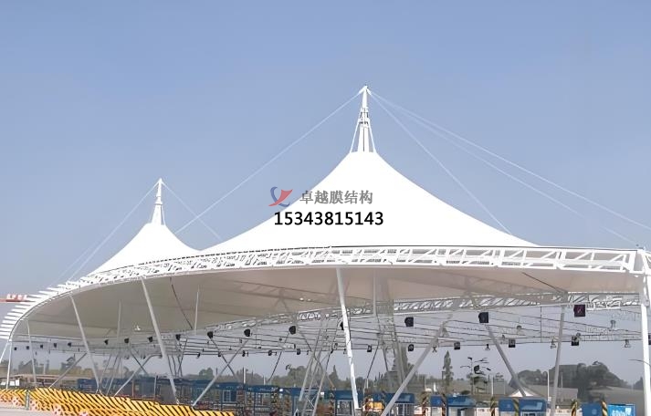 膜結(jié)構(gòu)出入口類型:地下車庫膜結(jié)構(gòu)出入口,大門膜結(jié)構(gòu)出入口,停車場出入口膜結(jié)構(gòu)收費(fèi)亭。地下車庫膜結(jié)構(gòu)出入口的功能是替代傳統(tǒng)雨棚,遮陽擋雨,提升車庫實(shí)用性。優(yōu)點(diǎn)則是可拆裝重復(fù)使用(綠色環(huán)保)、自潔性強(qiáng)(雨水沖洗即可清潔)、抗老化(壽命 15 年以上),主要應(yīng)用場景為住宅、商場、交通樞紐的地下車庫。大門膜結(jié)構(gòu)出入口的功能是兼顧遮陽防雨與景觀裝飾,提升建筑形象。優(yōu)點(diǎn)是造型新穎(如流線型、雕塑感設(shè)計)、透光性好(減少照明能耗)、自重輕(抗震性強(qiáng))。應(yīng)用場景通常是小區(qū)、景區(qū)、學(xué)校、商業(yè)綜合體的主入口。停車場出入口膜結(jié)構(gòu)收費(fèi)亭的功能是作為收費(fèi)管理設(shè)施,兼具功能性與美觀性,優(yōu)點(diǎn)則是施工快捷、大跨度無柱設(shè)計、抗風(fēng)抗雪能力強(qiáng)。應(yīng)用場景通常是公路收費(fèi)站、景區(qū)停車場、物流園區(qū)。