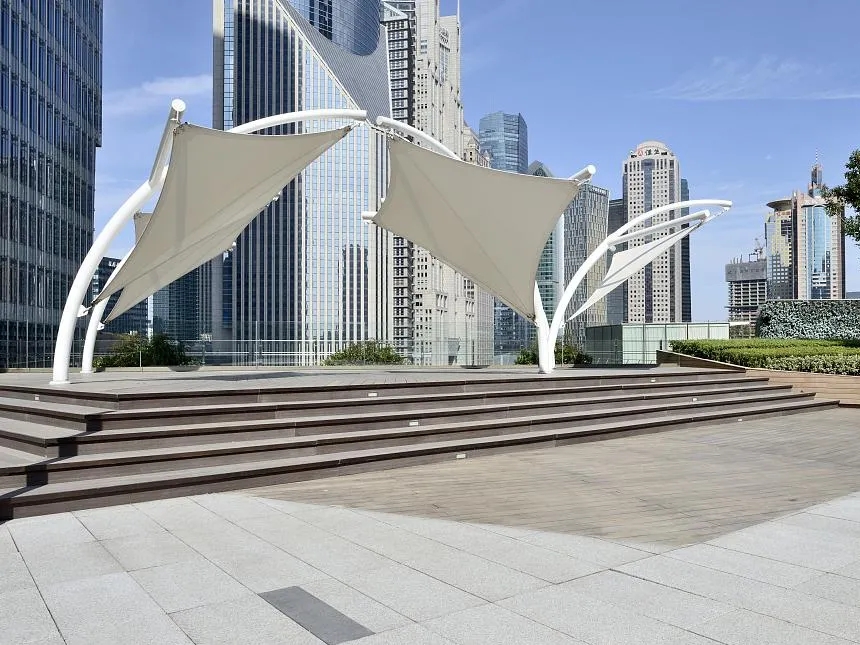 膜結(jié)構(gòu)景觀棚對(duì)太陽能的反射率高,所以熱吸取量很少。即使在夏日酷熱的日光的照射下室內(nèi)也不會(huì)受太大影響。耐久性好,天氣適應(yīng):-200~150攝氏度,景觀膜結(jié)構(gòu)工程,膜結(jié)構(gòu)工程的保養(yǎng)清潔,讓清洗劑作用幾分鐘,但是要避免清洗區(qū)域被風(fēng)干。用清水沖洗清洗過的膜面直至沒有清洗劑殘留在膜面上為止。透光性:充滿自然光的明快空間白天,陽光透過膜面使建筑物內(nèi)充滿夜自然漫射光。夜晚,室內(nèi)燈光透過膜面給空增添了夢(mèng)幻般的夜景。