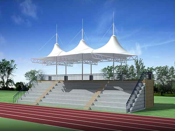 張拉膜看臺主要用于各類地方體育場主席臺雨棚,各類學(xué)校體育場看臺雨棚遮蓋,我公司是國內(nèi)較早從事大懸挑張拉膜結(jié)構(gòu)看臺設(shè)計施工的專業(yè)廠家,下面介紹一下我們在撫州市周邊縣市完工的一些張拉膜看臺設(shè)計施工案例,我公司先后在撫州周邊承接了撫州幼兒師范高等專科學(xué)校張拉膜看臺雨棚、撫州職業(yè)技術(shù)學(xué)院張拉膜看臺罩棚、江西中醫(yī)藥高等??茖W(xué)校張拉膜看臺遮陽棚等設(shè)計施工項(xiàng)目,簡介如下: