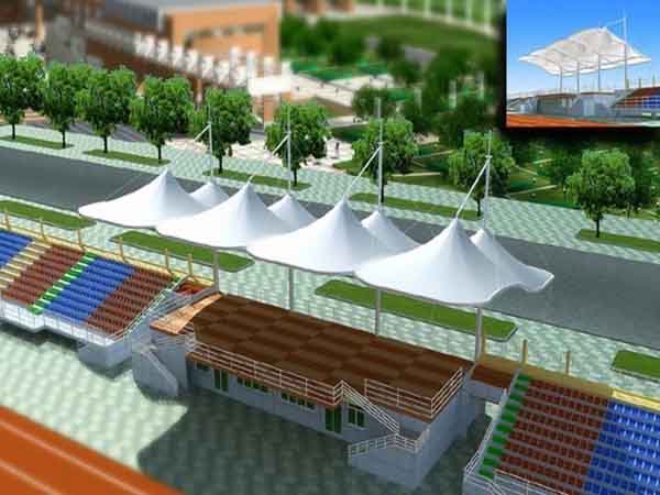 張拉膜看臺主要用于各類地方體育場主席臺雨棚,各類學校體育場看臺雨棚遮蓋,我公司是國內較早從事大懸挑張拉膜結構看臺設計施工的專業(yè)廠家,下面介紹一下我們在麗水市周邊縣市完工的一些張拉膜看臺設計施工案例,我公司先后在麗水周邊承接了麗水學院張拉膜看臺雨棚、麗水職業(yè)技術學院張拉膜看臺罩棚等設計施工項目,簡介如下: