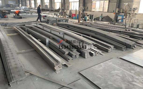 膜結(jié)構(gòu)生產(chǎn)的材料和加工:膜結(jié)構(gòu)的主要材料包括膜材和鋼結(jié)構(gòu)。根據(jù)設(shè)計(jì)要求,采購合適的膜材。常見的膜材有聚四氟乙烯(PTFE)膜材、聚氯乙烯(PVC)膜材等,采購時(shí)需注意膜材的質(zhì)量、性能和規(guī)格是否符合要求。我們的膜材通常采用進(jìn)口材料,具有高標(biāo)準(zhǔn)的阻燃、自潔和耐久性能。鋼結(jié)構(gòu)部分則根據(jù)設(shè)計(jì)圖紙進(jìn)行切割、焊接和打磨,確保其尺寸精確和表面光滑。我們會(huì)根據(jù)支撐結(jié)構(gòu)的設(shè)計(jì)要求,采購鋼材、鋁合金等材料,并進(jìn)行檢驗(yàn)和預(yù)處理,如除銹、防腐處理等。膜材的加工包括裁剪和焊接,使用先進(jìn)的裁剪及焊接生產(chǎn)線進(jìn)行,確保膜材的拼接精確和牢固。鋼結(jié)構(gòu)部分則通過CAD編輯到等離子切割,割出形狀后,用扁鐵包邊、打磨和刷油漆,確保其質(zhì)量和外觀。膜結(jié)構(gòu)的加工制作,膜結(jié)構(gòu)的展開形狀和尺寸,結(jié)合膜材的幅寬和特性,進(jìn)行裁剪設(shè)計(jì),確定每一塊膜片的形狀和尺寸,同時(shí)考慮到拼接縫的位置和方式,以減少材料浪費(fèi)和提高結(jié)構(gòu)性能。裁剪會(huì)使用到專業(yè)的裁剪設(shè)備,如數(shù)控裁剪機(jī),按照裁剪設(shè)計(jì)的圖紙對(duì)膜材進(jìn)行精確裁剪。裁剪過程中要注意控制裁剪精度,避免出現(xiàn)尺寸偏差和邊緣損傷。拼接縫合,將裁剪好的膜片通過熱合、縫合等方式進(jìn)行拼接,形成完整的膜結(jié)構(gòu)。拼接處要保證密封性能和強(qiáng)度,通常采用專用的膜材焊接設(shè)備或縫紉機(jī)進(jìn)行加工。支撐結(jié)構(gòu)的制作,支撐結(jié)構(gòu)也叫預(yù)埋件,預(yù)埋件的制作根據(jù)膜結(jié)構(gòu)的大小和設(shè)計(jì)要求進(jìn)行,厚度和長寬由CAD編輯到等離子切割而來‌?;A(chǔ)施工包括放線、切割地面、挖機(jī)破碎地面、混凝土放預(yù)埋板和地面修復(fù)等步驟。安裝過程中,將膜材與鋼結(jié)構(gòu)進(jìn)行精確連接,確保膜結(jié)構(gòu)的張拉和固定,使其在實(shí)際應(yīng)用中能夠承受各種環(huán)境條件,確保膜結(jié)構(gòu)的穩(wěn)固安裝。