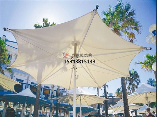 4、 雕塑感:張拉膜結(jié)構(gòu)的獨特曲面外形使其具有強烈的雕塑感。膜面通過張力達到自平衡。負高斯膜面高低起伏具有的平衡感使體型較大的結(jié)構(gòu)看上去像擺脫了重力的束縛般輕盈地飄浮于天地之間。無論室內(nèi)還是室外這種雕塑般的質(zhì)感都令人激動。