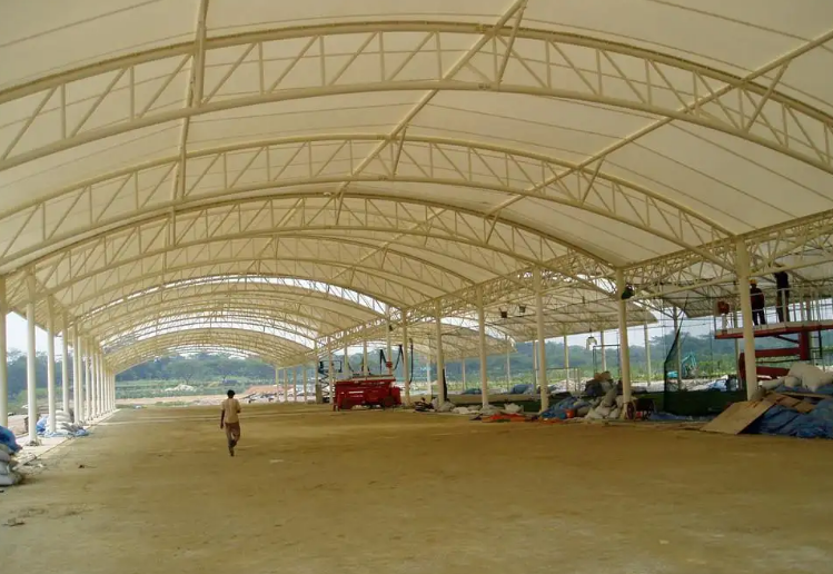 其次,膜結(jié)構(gòu)車棚的好處在于它維護保養(yǎng)起來非常的方便和簡單,也就是說它有很好的自潔性,上面落的灰塵,下雨的時候一沖,自己就干凈了,根本不需要專人經(jīng)常擦洗。這樣可以節(jié)約很大的人力成本。