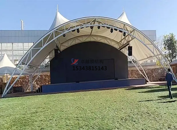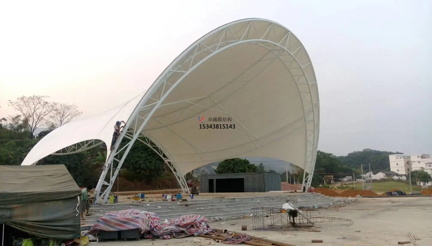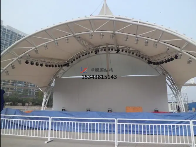3.可展性和自適應性:舞臺膜結構可以看作是一種人造的自適應體系,同許多自然有機體一樣,可根據(jù)需要改變自身的形式。它們的空間布置和對天氣變化的反應具有靈活性和自適應性。通過控制自然光和內(nèi)部溫充可達到主動節(jié)能的目的??烧菇Y構即可開敞也可閉合,它的靈活性使其可以改變空間的屬性。精心設計的可展屋蓋的優(yōu)雅滑動體現(xiàn)了人與自然的和諧。它被稱作是一種創(chuàng)造,輕型與可展性的充分結合形成了“免施工房屋”的概念,這種結構任何需要的時間或地點均可實現(xiàn)。