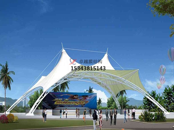 膜結構舞臺是更富吸引力的大跨結構之一,它把自然和科學融為一體,結合了多功能和高強度的優(yōu)點,縮短了建筑師和結構工程師之間的距離,在中國有廣闊的應用前景。