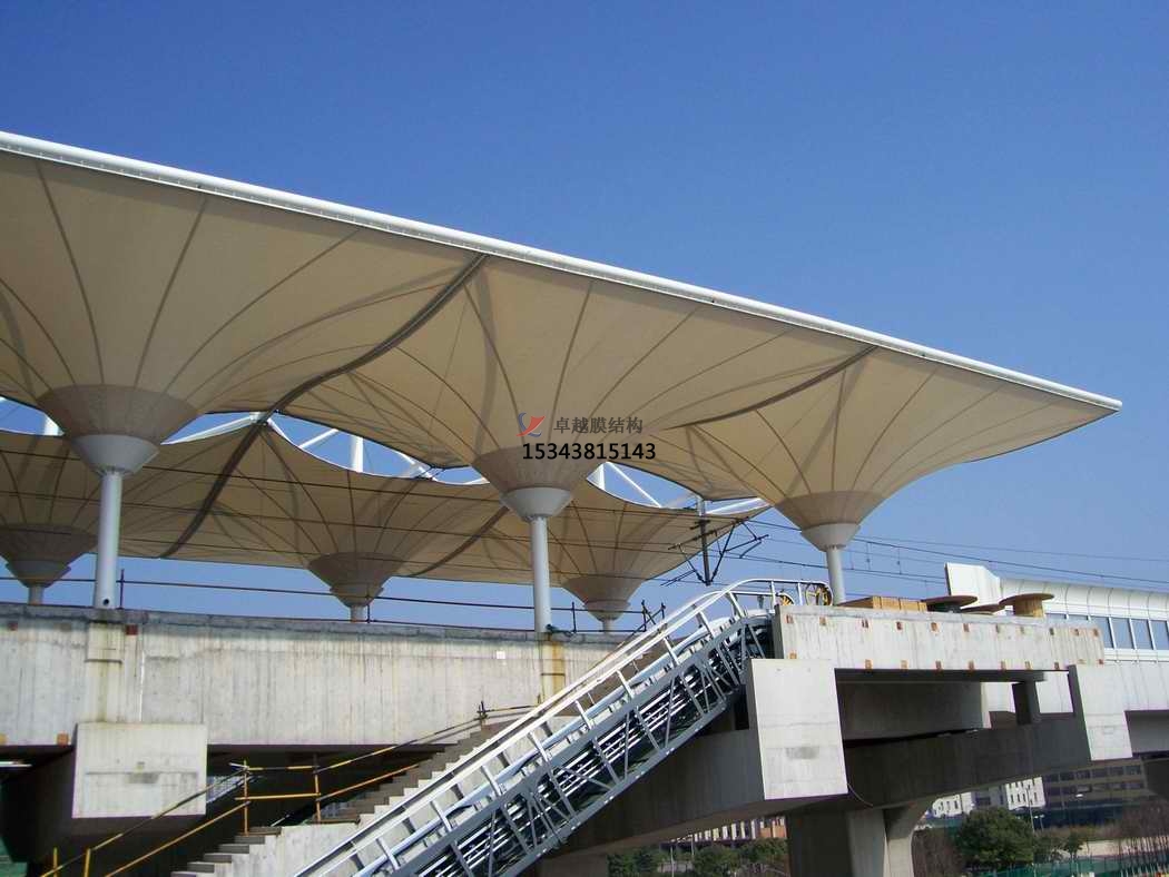 膜結(jié)構(gòu)雨棚屬于軟性材料,本身自動輕,耐高溫、抗紫外線,使用壽命長達15至20年。