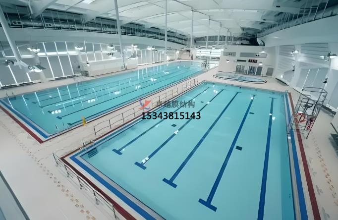 優(yōu)勢介紹:膜結(jié)構(gòu)游泳館造型豐富多樣。膜結(jié)構(gòu)游泳館以其流線型的外觀和豐富多彩的膜面圖案,成為城市中一道亮麗的風(fēng)景線。內(nèi)部空間開闊,無柱式設(shè)計(jì)不僅提升了視覺效果,更為游泳比賽、訓(xùn)練及休閑娛樂活動(dòng)提供了充足的自由度。如杭州游泳健身中心采用波浪型的白色雙層骨架膜結(jié)構(gòu)屋面,能體現(xiàn)出游泳運(yùn)動(dòng)特色,成為城市的標(biāo)志性建筑。膜結(jié)構(gòu)游泳館可以創(chuàng)造出無柱的大空間,使泳池區(qū)視野開闊,為游泳者提供更寬敞的活動(dòng)空間,也便于對(duì)游泳館進(jìn)行功能布局和設(shè)施配置。膜結(jié)構(gòu)游泳館采用氣承式膜結(jié)構(gòu),無需傳統(tǒng)鋼筋混凝土支撐,僅依靠氣壓支撐起整個(gè)場館,大幅降低了建筑材料的使用,符合綠色低碳的發(fā)展理念。此外,膜材料具有良好的透光性,能充分引入自然光,減少白天對(duì)人工照明的依賴,降低能源消耗,實(shí)現(xiàn)節(jié)能環(huán)保。