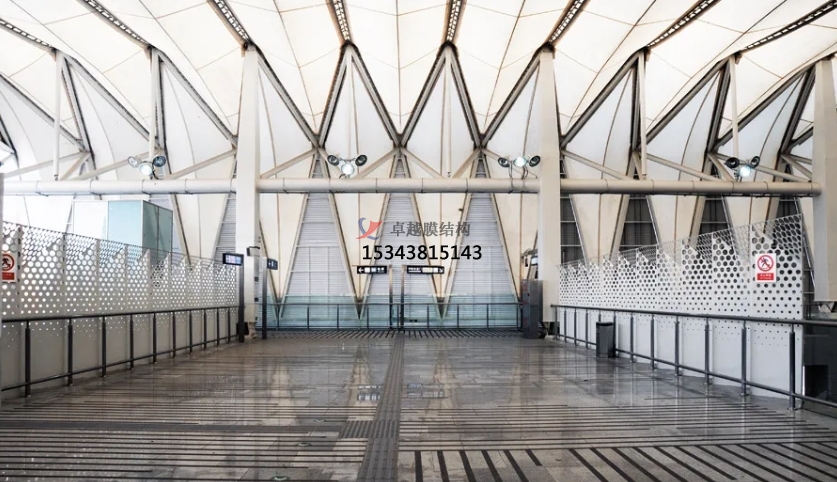 膜結(jié)構(gòu)使得建筑輕盈感十足,膜材料的良好透性使得建筑界面透光而不透視。由于該材料(ETFE)氣枕在陽光底下富有通透感光線可以通過漫射和折射進(jìn)入界面,讓膜結(jié)構(gòu)建筑呈現(xiàn)出朦朧夢(mèng)幻之美。