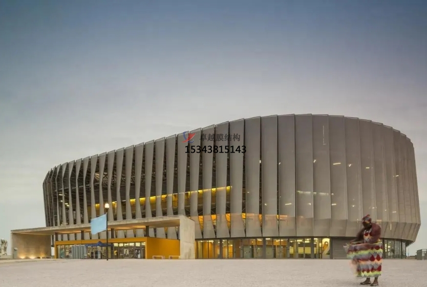 羅安達(dá)綜合體育館位于安哥拉首都羅安達(dá),該場(chǎng)地承辦了2013年場(chǎng)地冰球世界杯,這也是場(chǎng)地冰球世界杯第一次在非洲舉辦。項(xiàng)目面積30000㎡??梢匀菁{12000名觀眾,該體育館采用膜結(jié)構(gòu)幕墻作為外立面。為了適應(yīng)羅安達(dá)(安哥拉首都)的氣候特征,體育館上部分以平坦的裝飾圍欄配合膜結(jié)構(gòu)作為建筑表皮。