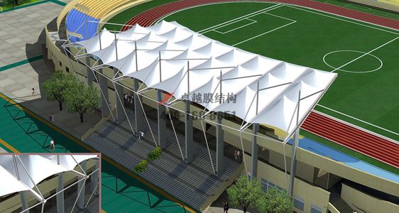 膜材的表面都有涂層,可以防止灰塵和雨水的侵蝕,保護(hù)建筑,提高使用壽命。膜結(jié)構(gòu)是一種新型材料,具有美觀、經(jīng)濟(jì)、隔熱、自潔、防火、吸聲、透光等特點(diǎn)。運(yùn)動(dòng)看臺(tái)中膜結(jié)構(gòu)的操作能較好地反映膜結(jié)構(gòu)的特點(diǎn)。與傳統(tǒng)的看臺(tái)相比,其內(nèi)部結(jié)構(gòu)具有外形美觀、空間跨度大、重量輕、使用壽命長(zhǎng)等特點(diǎn)。較好的體現(xiàn)了膜結(jié)構(gòu)的建筑空間跨度優(yōu)勢(shì),且工期短。膜結(jié)構(gòu)的特點(diǎn)越來(lái)越受到人們的重視,因此越來(lái)越多的建筑設(shè)計(jì)采用膜結(jié)構(gòu)來(lái)代替?zhèn)鹘y(tǒng)的混凝土結(jié)構(gòu)。具體如下簡(jiǎn)介: