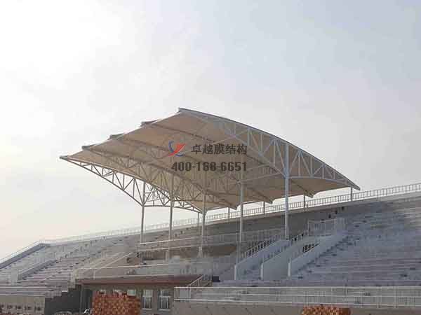 張拉膜看臺主要用于各類地方體育場主席臺雨棚,各類學(xué)校體育場看臺雨棚遮蓋,我公司是國內(nèi)較早從事大懸挑張拉膜結(jié)構(gòu)看臺設(shè)計施工的專業(yè)廠家,下面介紹一下我們在亳州市周邊縣市完工的一些張拉膜看臺設(shè)計施工案例,我公司先后在亳州周邊承接了亳州學(xué)院張拉膜看臺雨棚、亳州職業(yè)技術(shù)學(xué)院張拉膜看臺罩棚等設(shè)計施工項目,簡介如下: