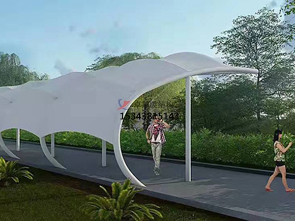 3、張拉膜車棚頂部封板基本都采用茶色的陽光板進(jìn)行封頂,和車棚整體的骨架用壓條鉚接固定,不僅耐酸堿腐蝕,而且有足夠的強(qiáng)度對棚內(nèi)車輛起到保護(hù)作用。