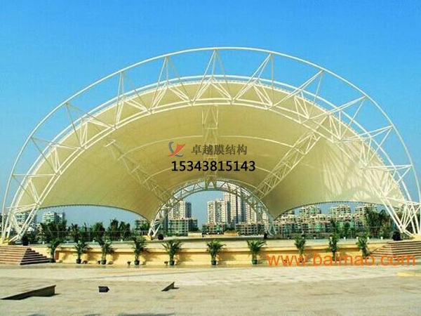 膜結(jié)構(gòu)舞臺(tái),還是日照海邊每一個(gè)車站候車站處的膜結(jié)構(gòu)車棚,還有河南云臺(tái)山處的風(fēng)景膜,在風(fēng)景區(qū),或者在美麗的山水處,這種膜結(jié)構(gòu)與周圍的環(huán)境連在一起,很美觀,很吸引人的眼球。