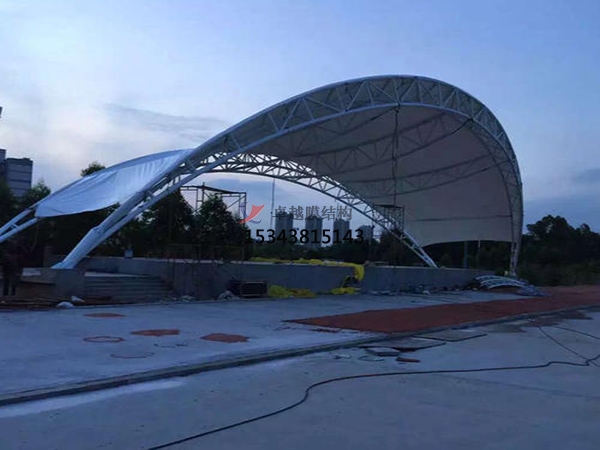 骨架式膜結(jié)構(gòu)車(chē)棚、以鋼構(gòu)或是集成材構(gòu)成的屋頂骨架后,在其上方張拉膜材的構(gòu)造形式,下部支撐結(jié)構(gòu)安定性高,因屋頂造型比較單純,開(kāi)口部不易受限制,且經(jīng)濟(jì)效益高等特點(diǎn)。膜結(jié)構(gòu)車(chē)棚廣泛適用于任何大小規(guī)模的空間。膜結(jié)構(gòu)公司、以膜材、鋼索及支柱構(gòu)成,利用鋼索與支柱在膜材中導(dǎo)入張力以達(dá)安定的形式。除了可實(shí)踐具有創(chuàng)意、創(chuàng)新且美觀的造型外也是更能展現(xiàn)膜結(jié)構(gòu)精神的構(gòu)造形式。近年來(lái),大型跨距空間也多采用以鋼索與壓縮材料構(gòu)成鋼索網(wǎng)來(lái)支撐上部膜材的形式。膜結(jié)構(gòu)車(chē)棚施工精度要求高,結(jié)構(gòu)性能強(qiáng),且具豐富的表現(xiàn)力。