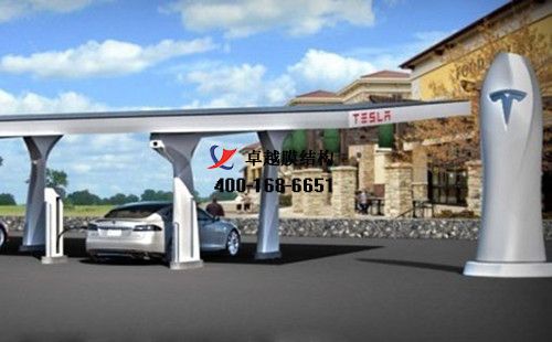 膜結(jié)構充電站樁車棚設計、施工項目,效果及簡介如下: